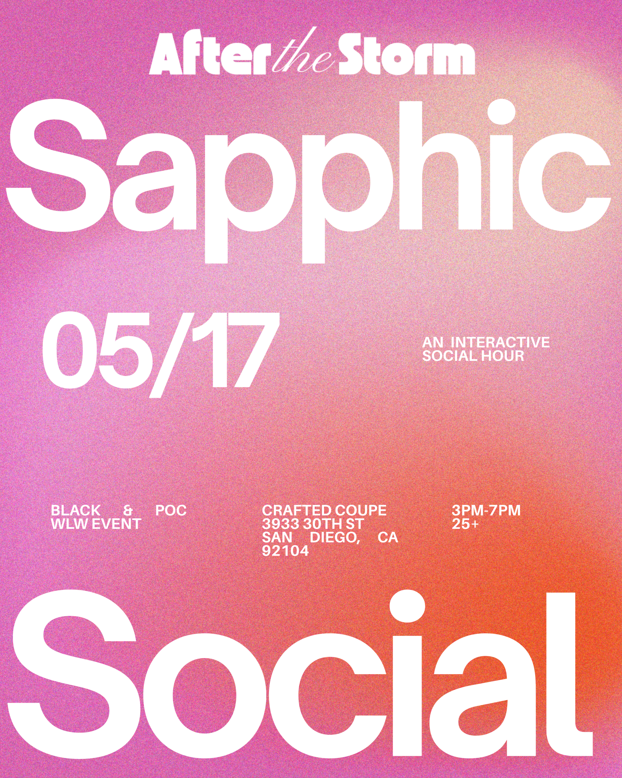 Join us in North Park for a fun night of intentional connection with other hot, Black, and POC sapphics. Come ready to make new friends (or lovers 😉) during our social scavenger hunt. Grab a drink (N/A options available), pick up the conversation cards that will be placed throughout the space, and have a great time. We can’t wait to meet you ✨