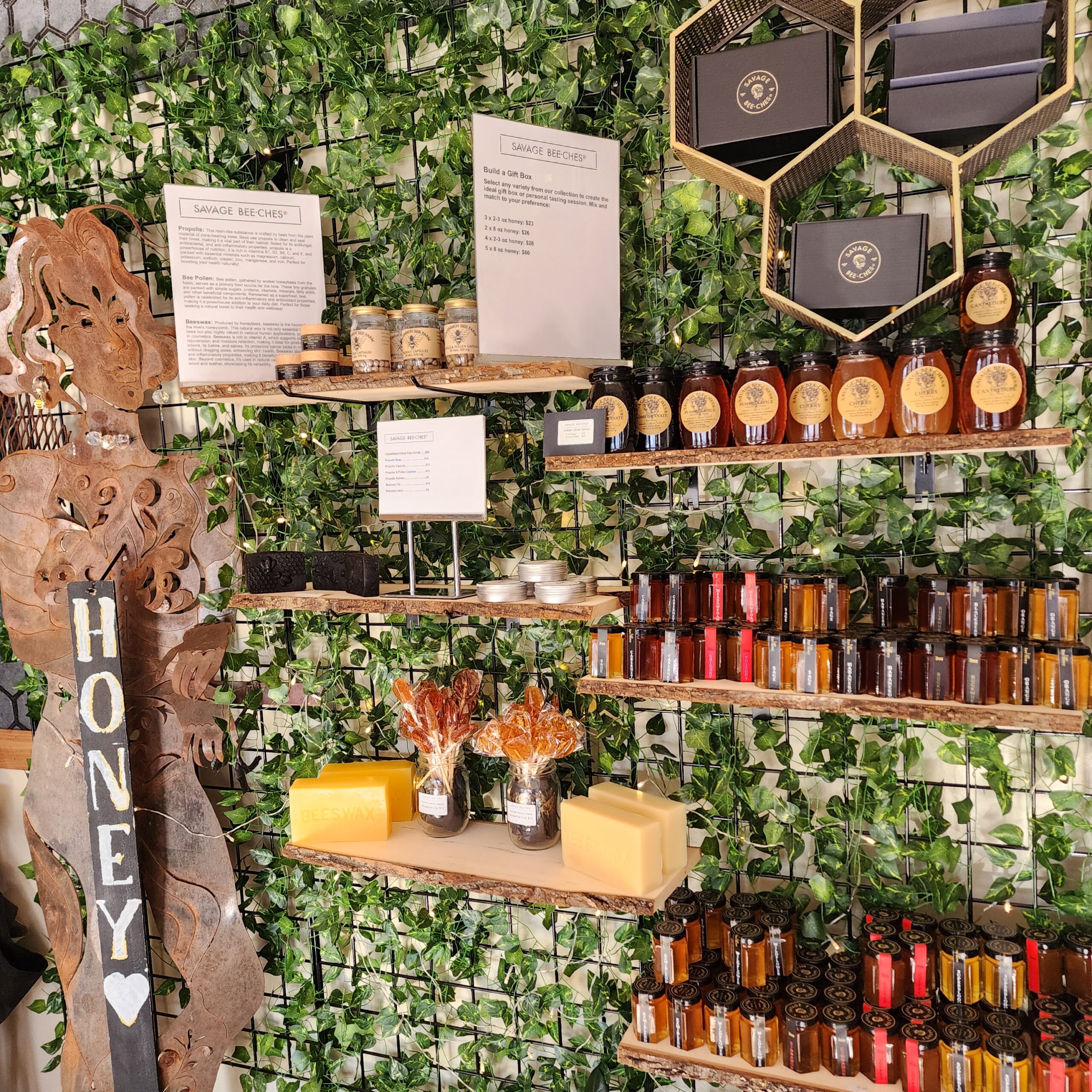 Our collection includes a variety of honey, each sourced to showcase the unique flavors of San Diego’s diverse flora. Additionally, our hand-poured beeswax candles and skincare products are crafted with care. Our Old Town San Diego boutique is the only honey store in the city or county. You are greeted with the sweet smell of honey and over 20 varieties of honey to choose from.